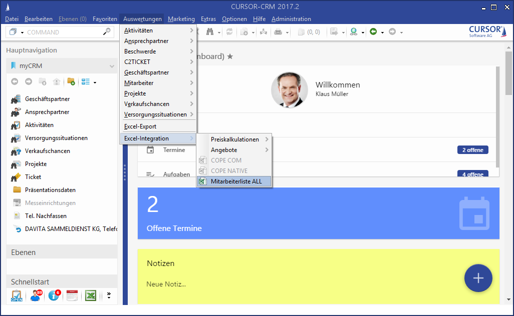Die Daten aus dem CRM werden in die kopierte Exceldatei übertragen.