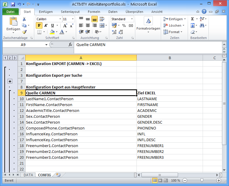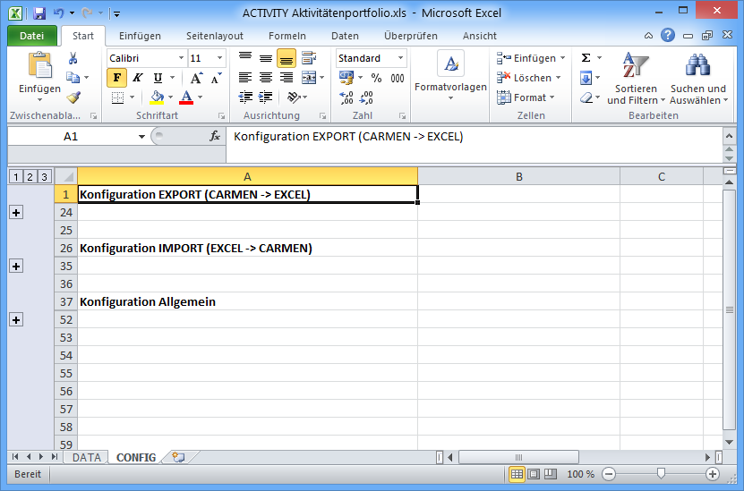 Name der Startzelle nach dem Datentransfer | START (Name der Zelle: CONF_CELL_START) | Diese Zelle ist nach dem Datentransfer fokussiert. |