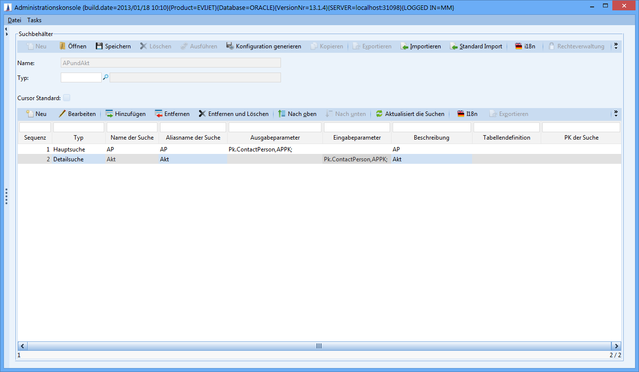 Suchen sollten also auf der Entität starten, deren Felder ausgegeben werden sollen. Bei komplexen Suchen (Suchbehältern) sollte die Verknüpfung zur Hauptsuche dann über Besitzt-Zweige hergestellt werden.