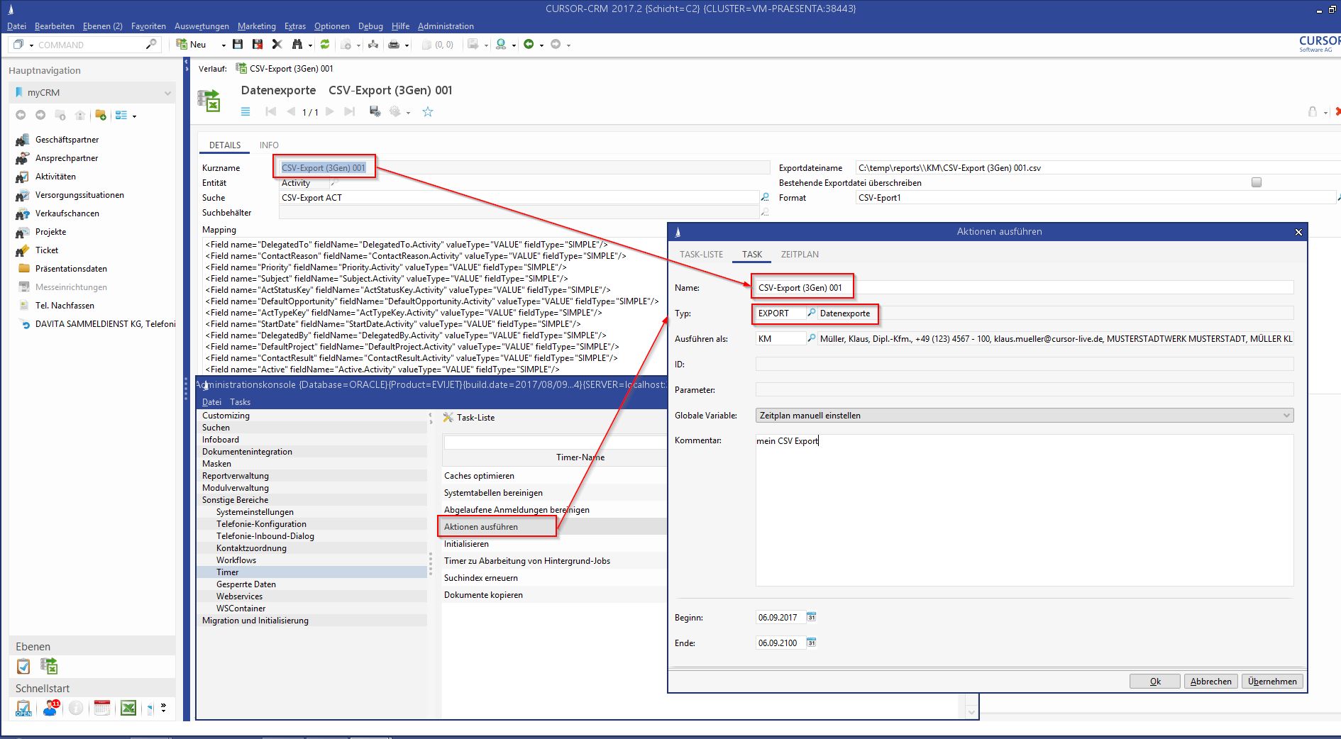 b) CSV-Export eines Datenexports (timergesteuertes Anstarten)