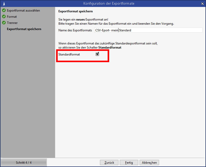 Beim Export ist darauf zu achten, dass der Name der Vorlage übereinstimmt.
