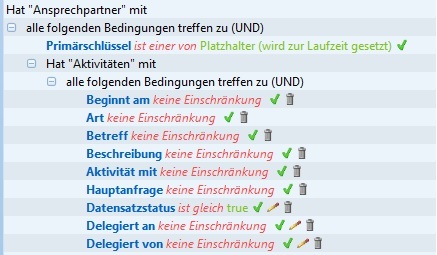 Die folgende Untersuche (Typ: Tabellensuche) soll nun Aktivitäten des Ansprechpartners selektieren