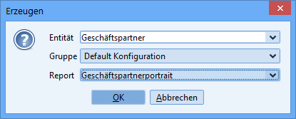 Aussehen des Dialogs, wenn kein Report konfiguriert ist