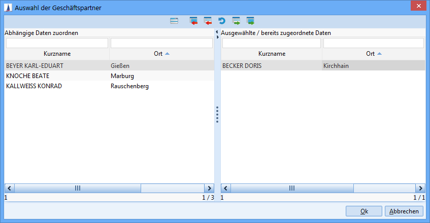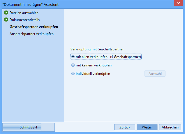 Bei der Bearbeitung des Assistenten hat der Anwender nun die Möglichkeit, einzelne Ansprechpartner und Geschäftspartner auszuwählen. Nur diese werden mit der bzw. den Anwendungsdateien verknüpft.