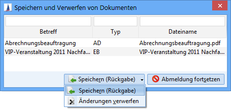 Nach dem Schließen des Dokuments durch den Anwender werden die Änderungen nicht automatisch in der Anwendung gespeichert. Die Speicherung erfolgt erst mit der Rückgabe.