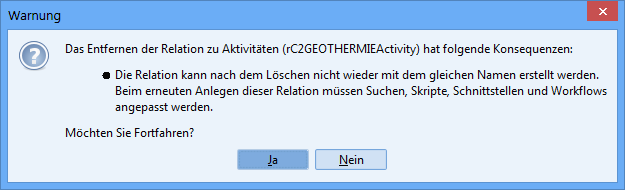 Wird im EntityCreator eine Relation entfernt, bekommt der Anwender unter den folgenden Umständen eine Meldung.