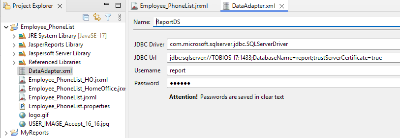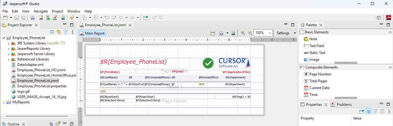 Das Projekt mit den einzelnen Reports (Endung .jrxml) und zusätzlichen Ressourcen können im Project Explorer geöffnet werden.