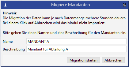 Nach dem Einspielen des Moduls muss ein Mandant im System angelegt werden, der allen Benutzern zugewiesen wird. Alle bestehenden Datensätze werden ebenfalls diesem Mandanten zugewiesen.