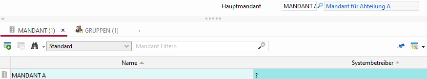 inklusiver Modus: Hat ein Benutzer das Zugriffsrecht auf mehrere Mandanten, so werden ihm die Daten aller Mandanten angezeigt. Der Hauptmandant wirkt sich lediglich auf das Erzeugen neuer Daten aus.
