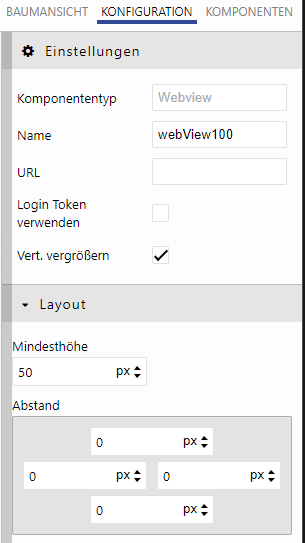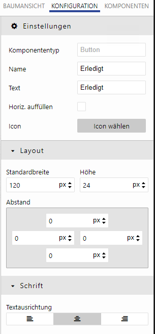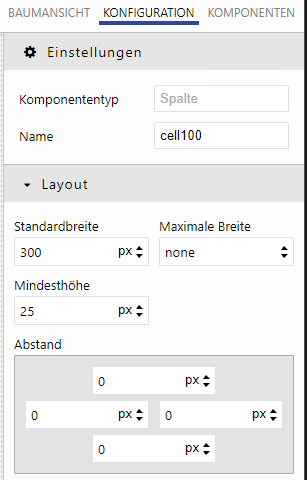 Für jede Komponente werden Layout-Eigenschaften konfiguriert.