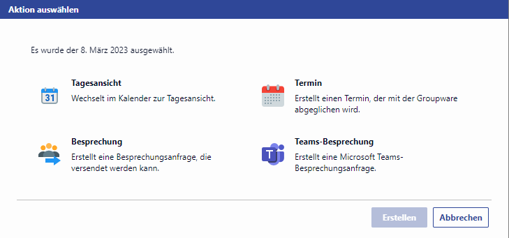 Bei allen anderen Arten "Neuen Termin/Besprechung erstellen"
