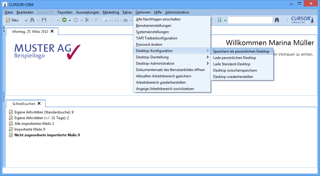 myCRM-Bereich und Desktop