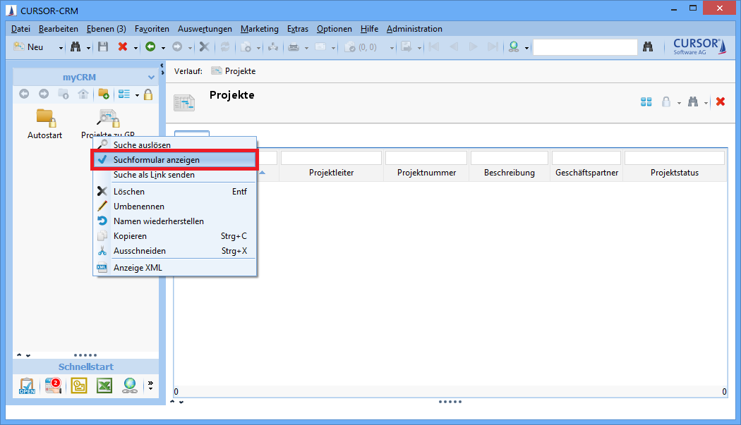 Abbildung: Kontextmenü von Sucheinträgen in myCRM