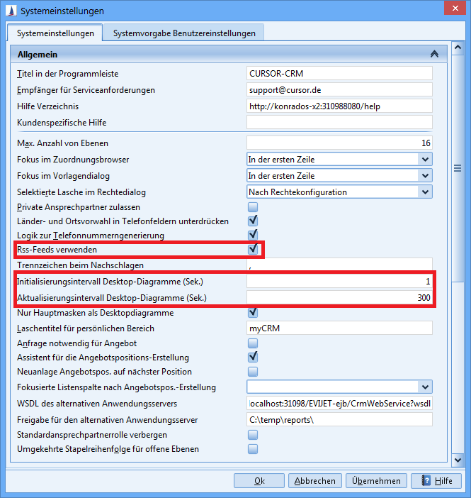 Ziel der Erweiterung ist die Schaffung einer Möglichkeit, die Desktopkonfiguration direkt in der Anwendung zu konfigurieren. Die Definition erfolgt systemweit, konfigurationsgruppenspezifisch und benutzerindividuell. Gespeichert werden Diagramme, Auswertungen, Rss-Feeds, Schnellsuchen und der Willkommensspruch.