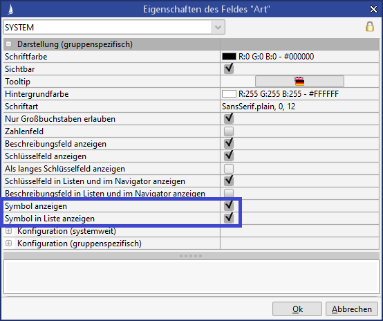Abbildung: Konfiguration der Schlüsselsymbole für Felder