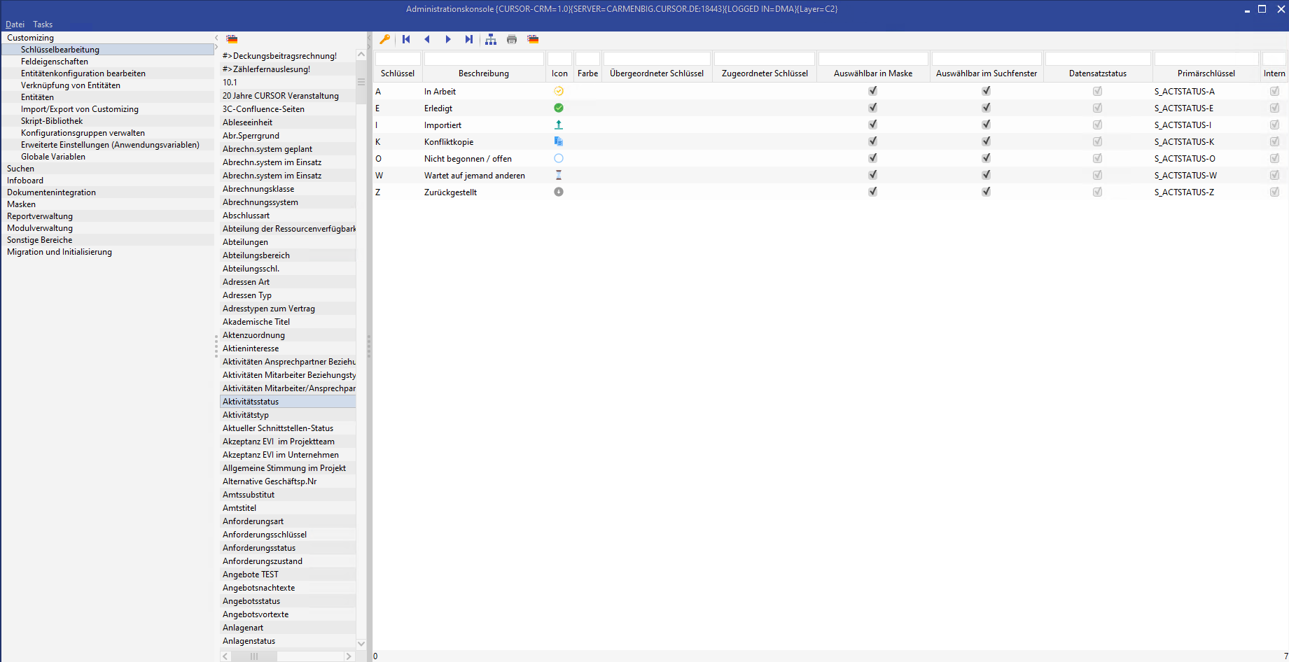 Key | KeyRange (Pk) | Beschreibung DE | Beschreibung EN | Icon/Farbe | Auswählbar in Maske | Auswählbar in Suchmaske |