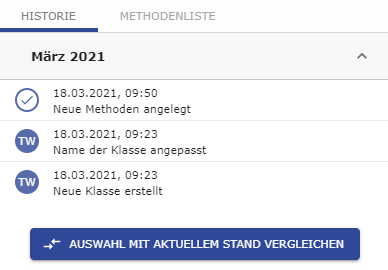 Der Vergleich ist zwischen verschiedenen Versionen aus der Historie oder mit den aktuellen, ungespeicherten Änderungen im Editor möglich.