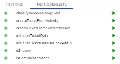 An welchen Stellen im CRM die Skript-Methode eingesetzt werden kann, bestimmen die Annotationen am Methoden-Kopf, welche mit dem @-Symbol gekennzeichnet sind und in der Zeile direkt über der Methode nachgeschlagen werden können. Nur Methoden mit denselben Verwendungsstellen können sich gegenseitig aufrufen.