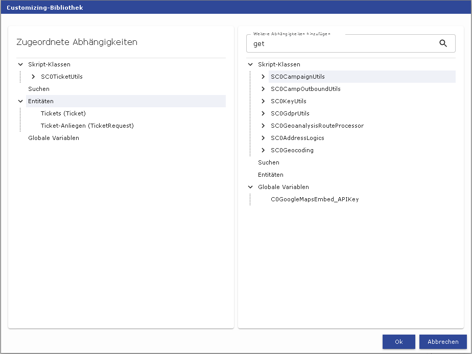 öffentliche Konstanten können über die Customizing-Bibliothek in Maskenskript / Skript-Klassen importiert werden