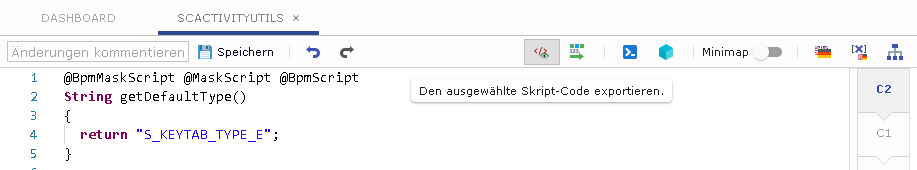 Im C1-Modulbau ist es von Zeit zu Zeit notwendig, eine Skript-Klasse aus dem Sandbox-System in das Entwicklungssystem zu übertragen. Hierfür kann die Skript-Klasse inklusive der Dokumentation und der Abhängigkeiten aus dem Dashboard der Skript-Bibliothek exportiert werden. Dies kann auch genutzt werden, um einen Zwischenstand z.B. vor einem Update zu sichern.