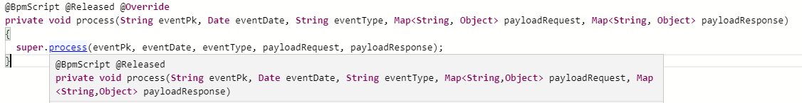 die Annotation zur Verwendbarkeit (@BpmScript, ...) werden nicht angegeben