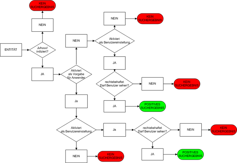 Der Index wird für alle explizit aktivierten Entitäten erstellt. Erst im letzten Schritt wird geprüft, ob der Anwender, der die Suche ausführt, das Recht hat, die Entität und den Datensatz zu sehen.
