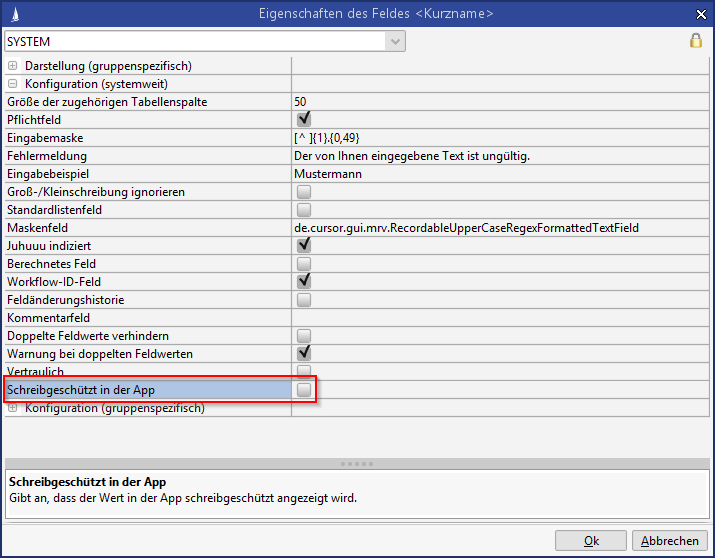 Ansonsten ist das Feld schreibgeschützt