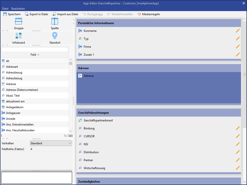 Weitere Funktionalitäten des AppEditor: