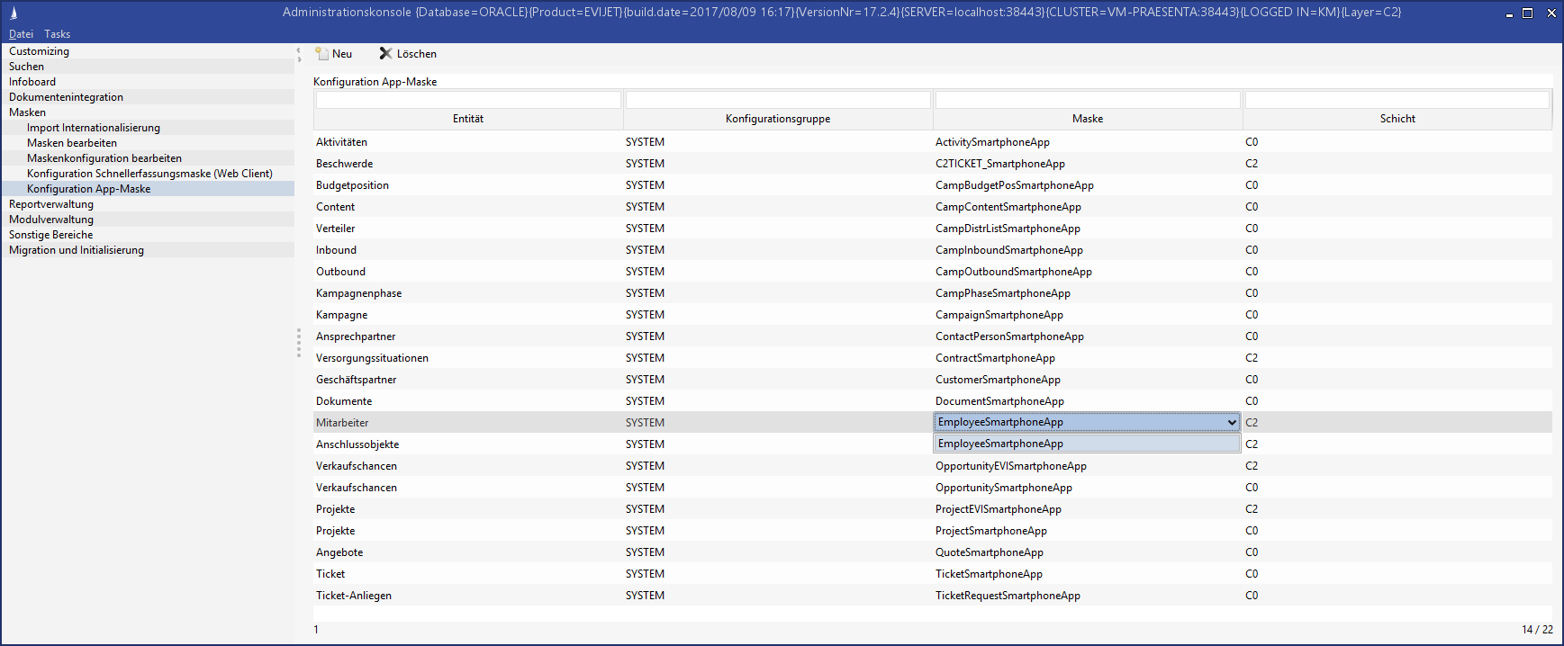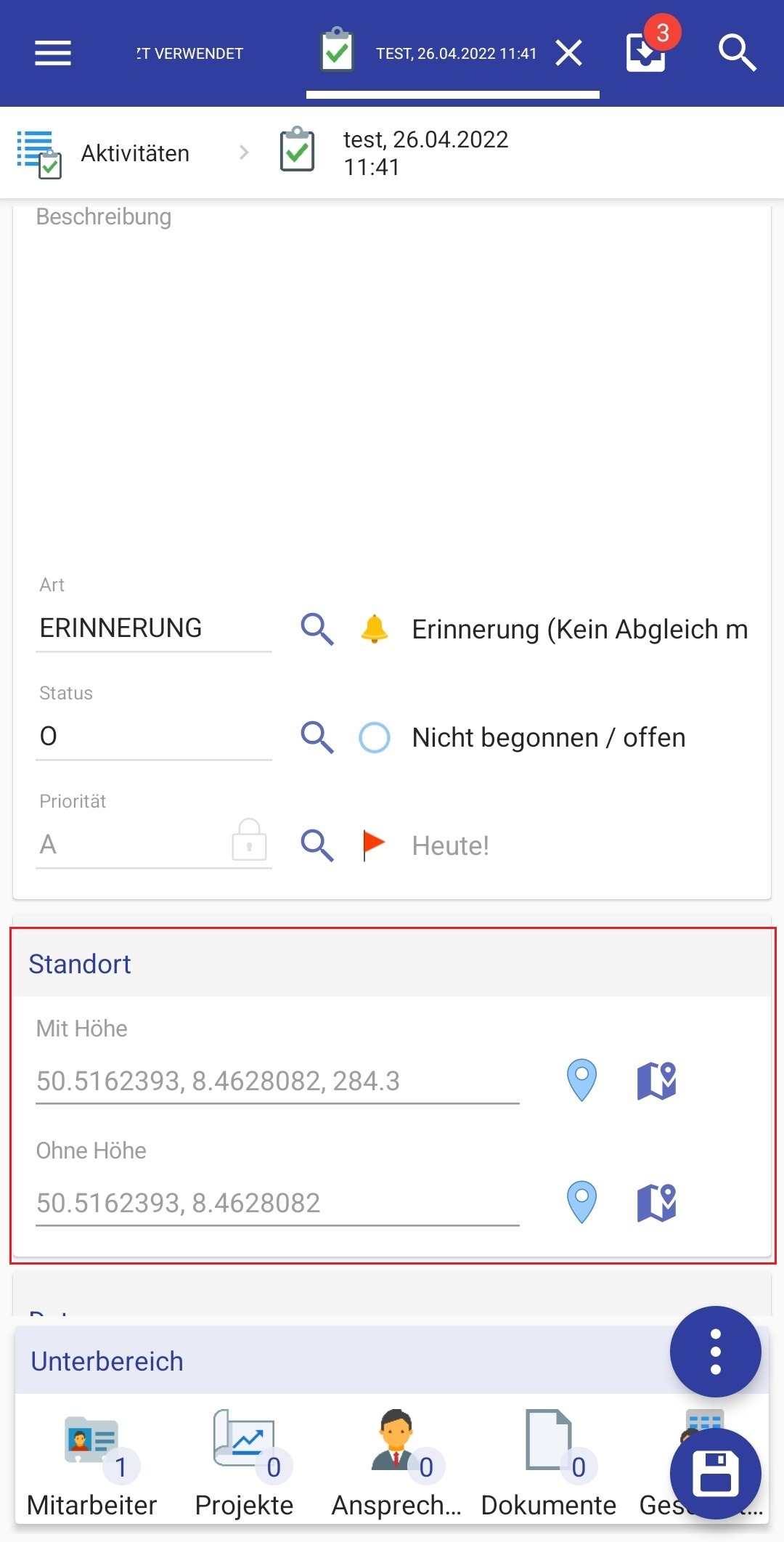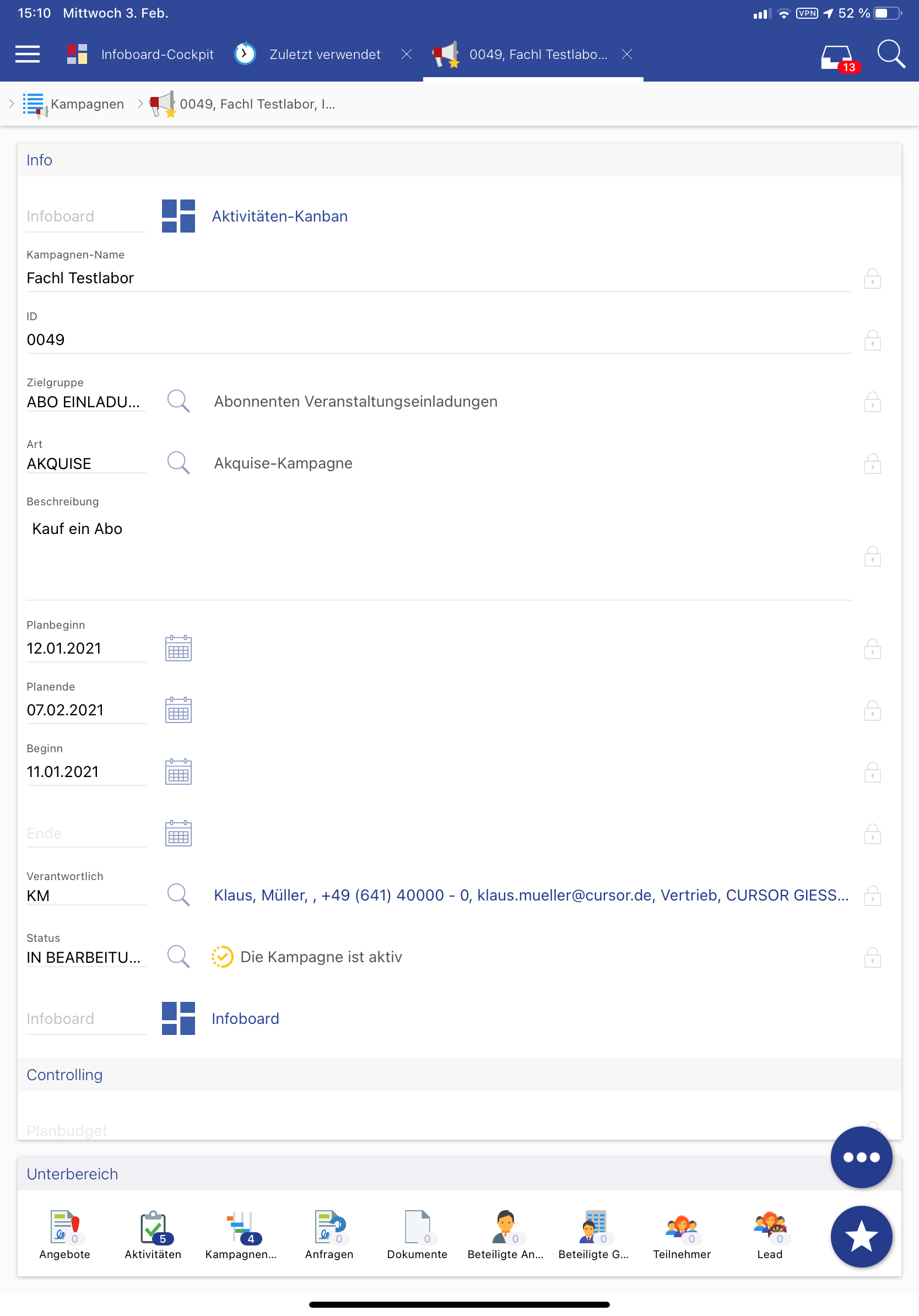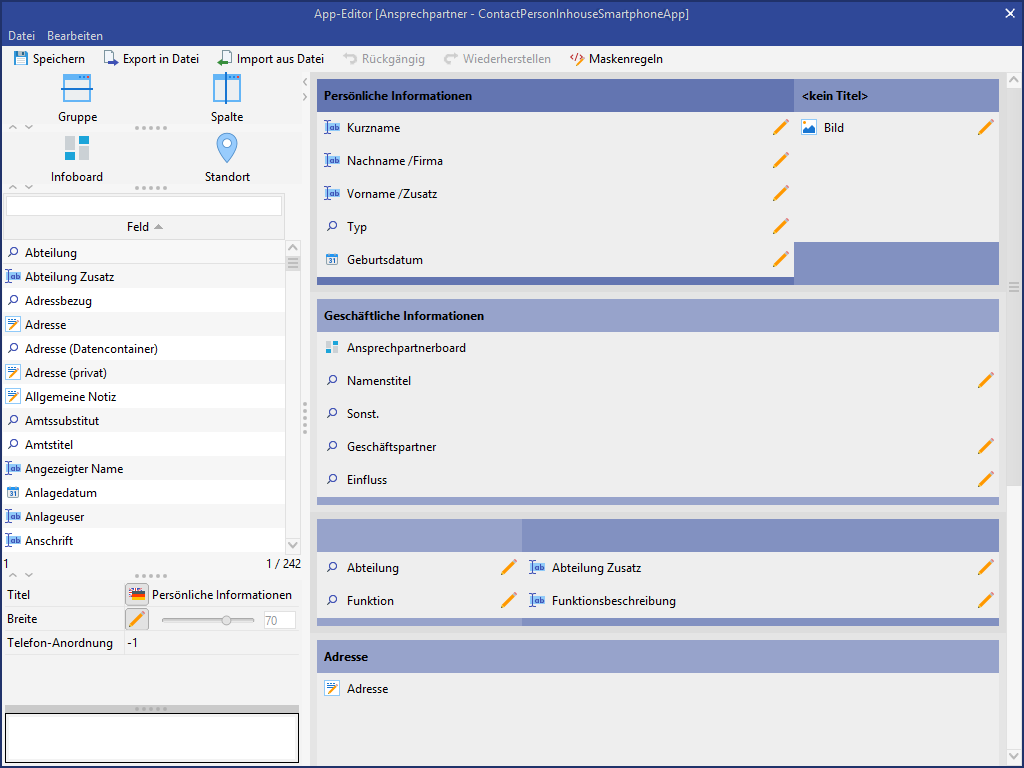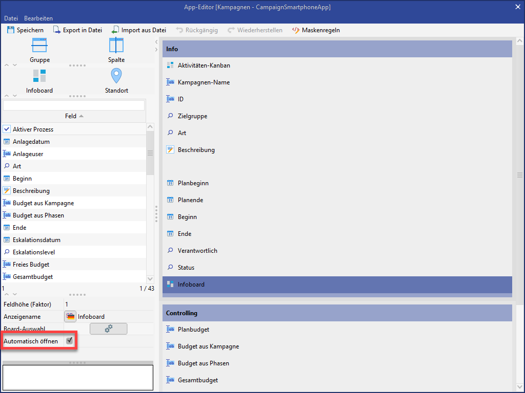appMaskColumn.278697234750900wird nur eingeblendet, wenn die Aktivitätsart "TERMIN" oder "BESPRECHUNG" ist.Die Infoboard-Komponente