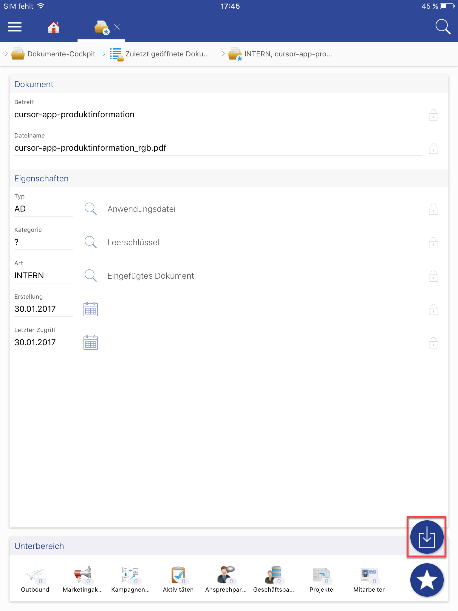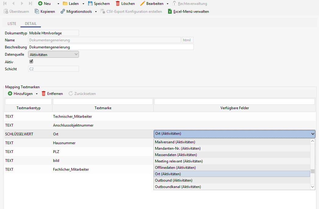 Da die Dokumentengenerierung auch Offline verfügbar ist, ist es erforderlich, dass alle Felder die in dem Mapping von Textmarken ausgewählt wurden, auf der App Maske enthalten sind.