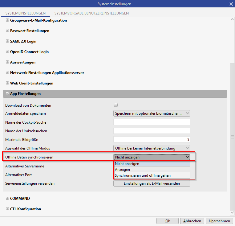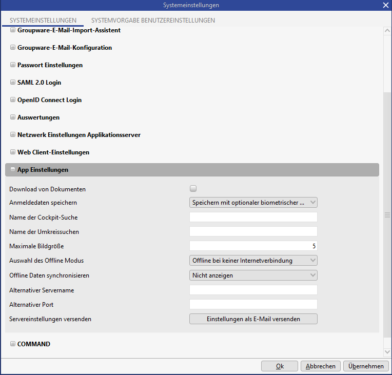 Systemeinstellungen für die App