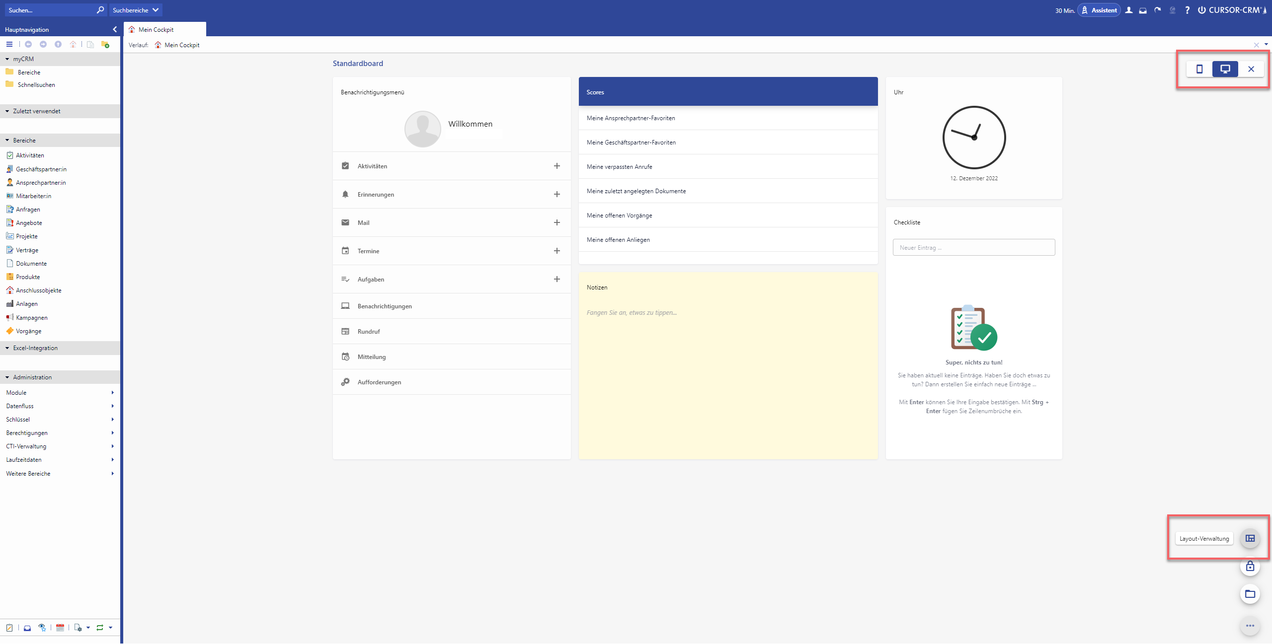 Hierfür wurde eine Layout-Verwaltung im Web Client umgesetzt: