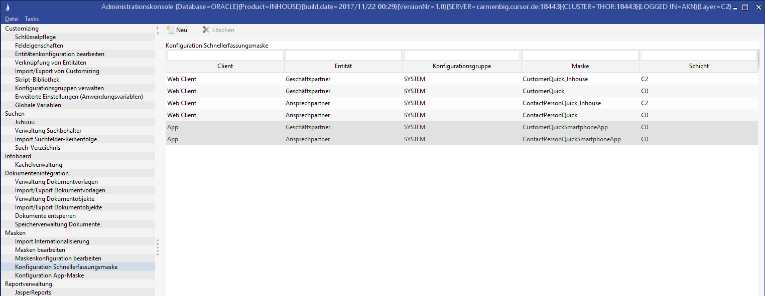 Serverkonfiguration für die CURSOR-App auslesen