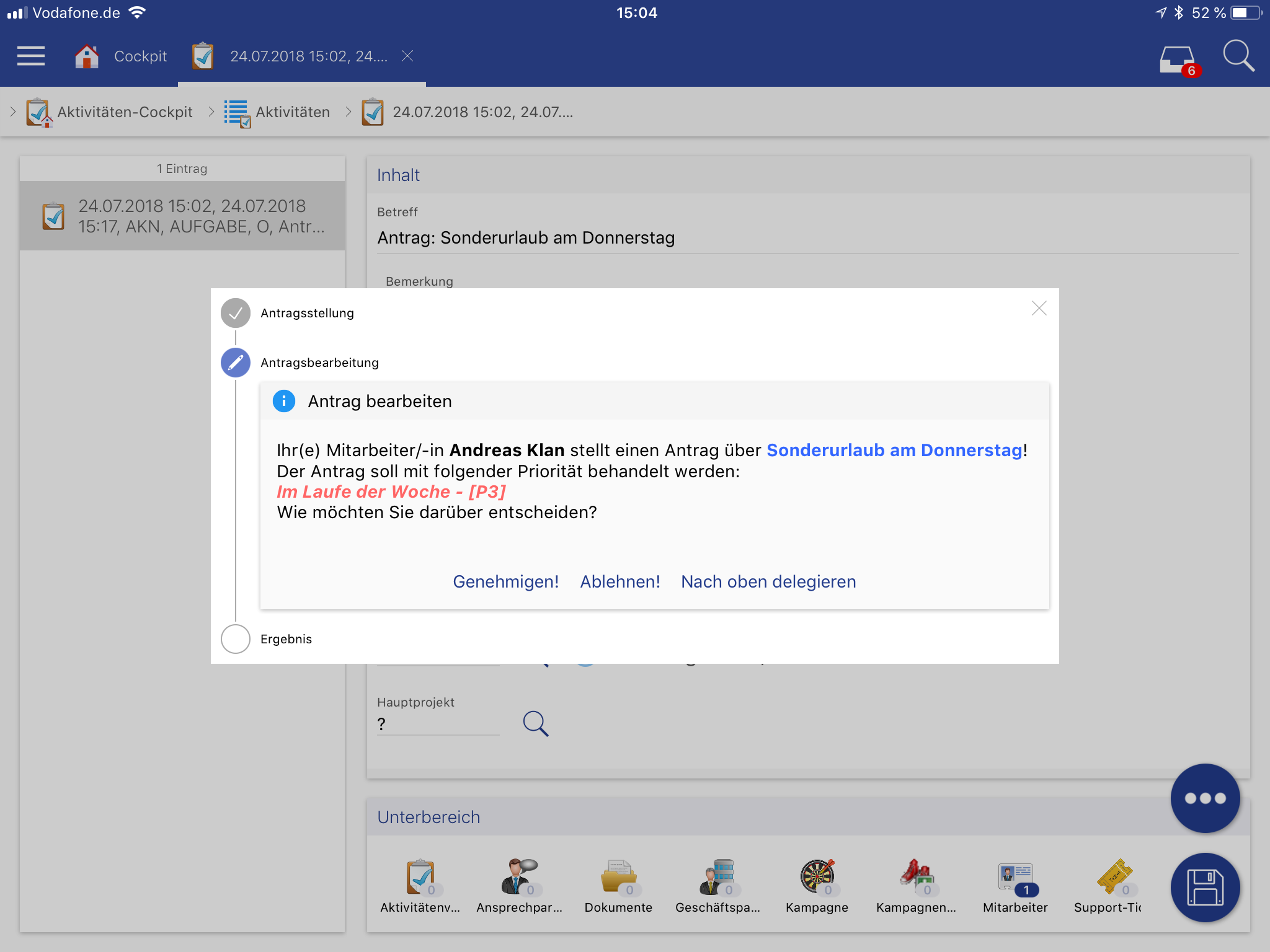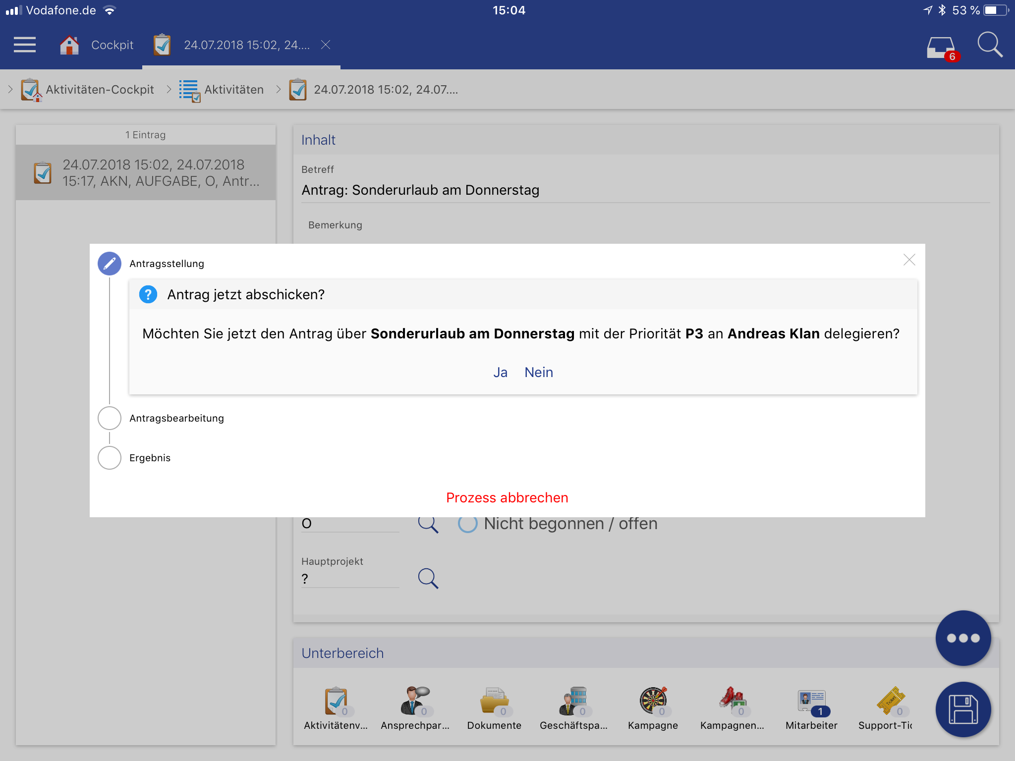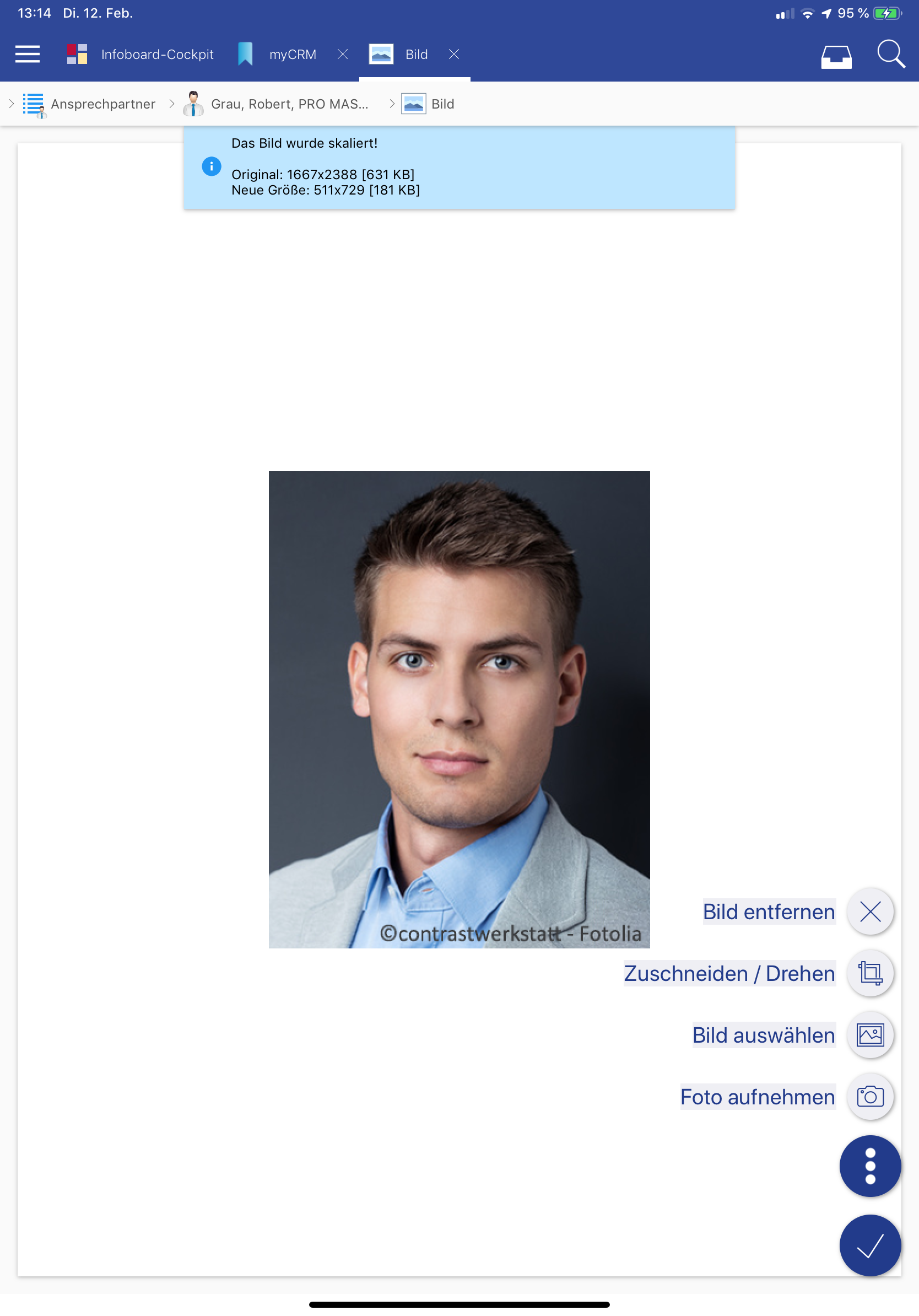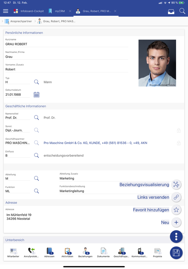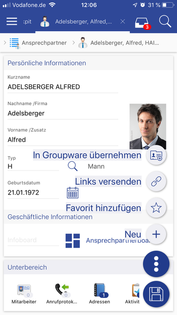 Es besteht nun auch auf der App die Möglichkeit, Ansprechpartner in die Groupware zu übernehmen oder zu entfernen.