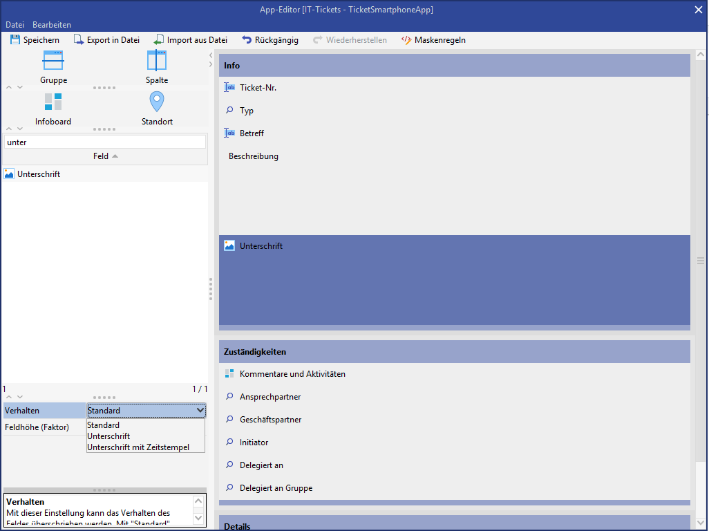 App-Editor: Auswahl Unterschrift oder Bild