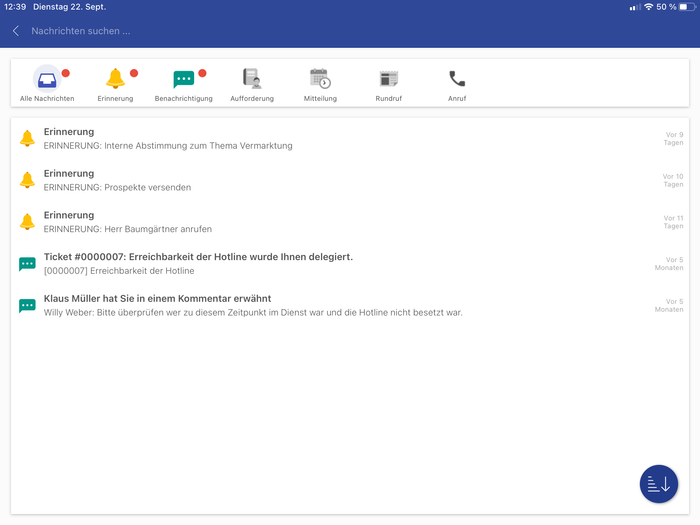 Mit der App-Version 5.0 wurden die Icons für das Benachrichtigungsmenü und den Schlüssel für den Typ Erinnerung ausgetauscht.