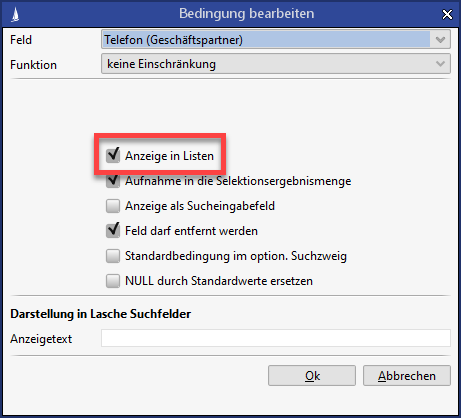 Datensatz mit aktivierter Einstellung