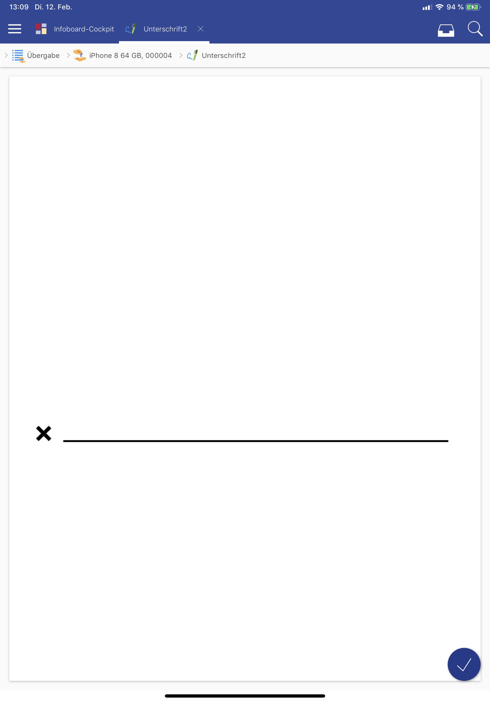 Für den Fall, dass die App beim Öffnen des Datensatzes keine Serververbindung hat, wird statt des Infoboards in diesem Fall direkt die Maske angezeigt.