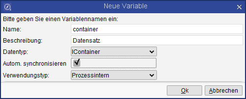 Die Aktualisierung bezieht sich auf alle im Prozess verwendeten Variablen vom Typ IContainer mit der Option 'automatisch synchronisieren'