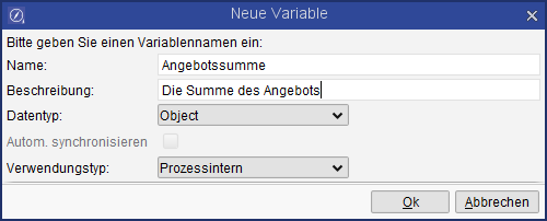 Der Verwendungstyp ist wichtig für die Definition von Ein- bzw. Ausgabevariablen in Teilprozessen. Der Standard ist Prozessintern.
