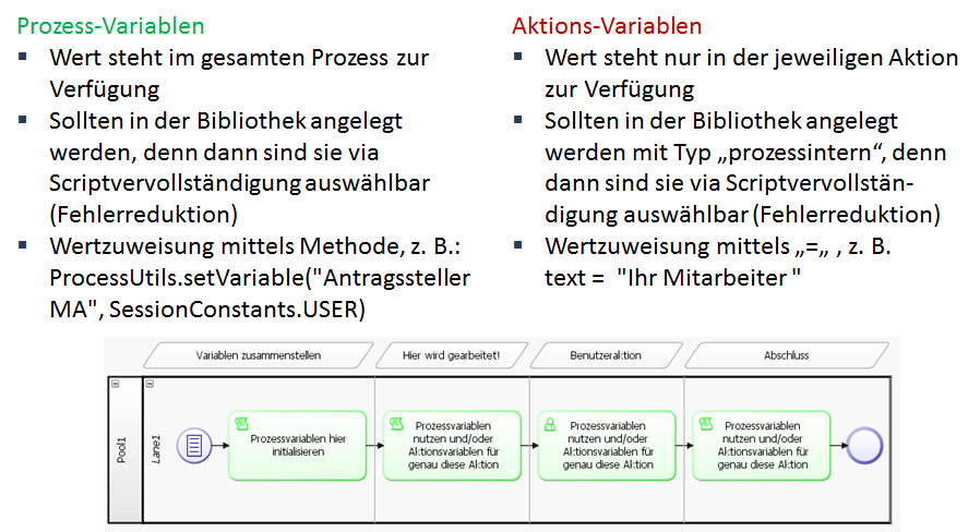 Für korrektes Scripting sowohl in Benutzer- als auch in Skript-Aktionen sollten Sie mit Konzepten zu Datentypen, Gültigkeitsbereichen von Variablen und Zuordnungsoptionen von Unterbereichsinformationen vertraut sein.