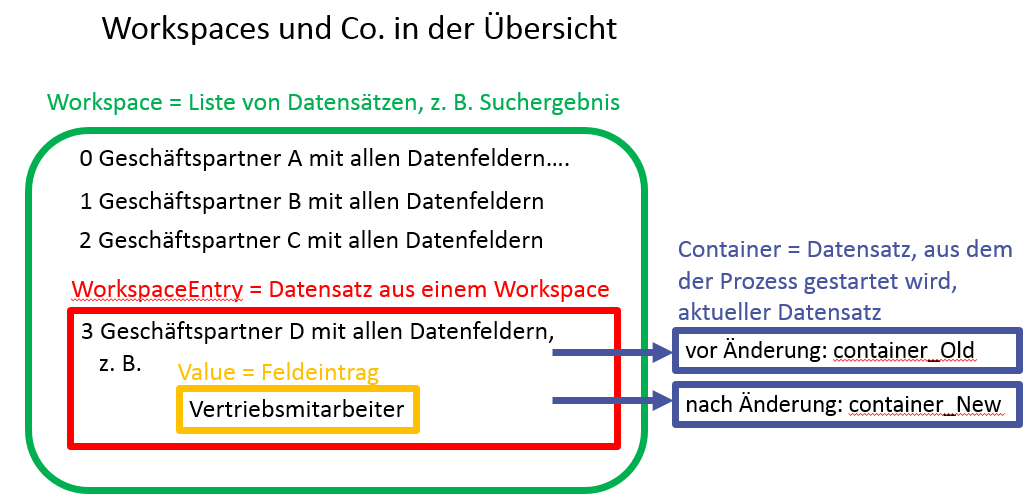 Zusammenhang von Workspaces, Entries, Containern und Values