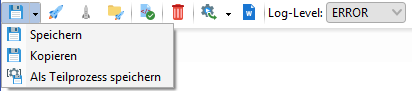 Über den Schalter Speichern wird der vollständige Prozess gespeichert. Der Schalter bietet darüber hinaus noch die Möglichkeit, eine Kopie des Prozesses zu erstellen, indem Sie ihn unter einem neuen Namen abspeichern. Alle Modelle und externe Daten werden dabei übernommen. Der Prozess hat die Versionsnummer 1 und ist nicht veröffentlicht. Änderungen an der Kopie haben bedingten Einfluss auf das Original: