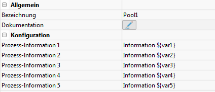 Zu jedem Prozess können Zusatzinformationen in den Eigenschaften des ausführbaren Pools hinterlegt werden. Auf Variablen im Prozess kann mit der Schreibweise ${variablenname} zugegriffen werden.