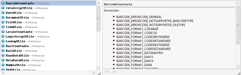 Zur komfortablen Unterstützung wird Ihnen im Script-Editor eine ausführliche Dokumentation über die Autovervollständigung angeboten: