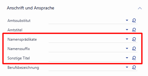 Zusätzliche Felder für Namensergänzungen auf der Maske eines Ansprechpartners