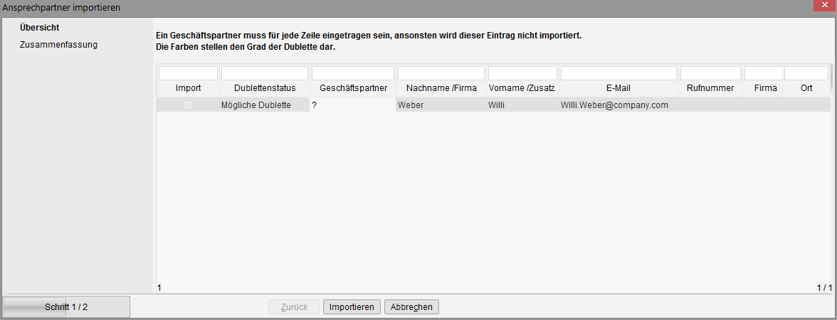 Ansprechpartner importieren.1. Schritt im Assistenten.