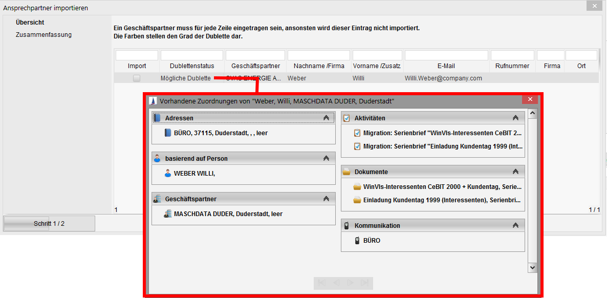 Anhand dieser Informationen sollen Sie ausschließen können, dass es sich um keine Dublette handelt.Import