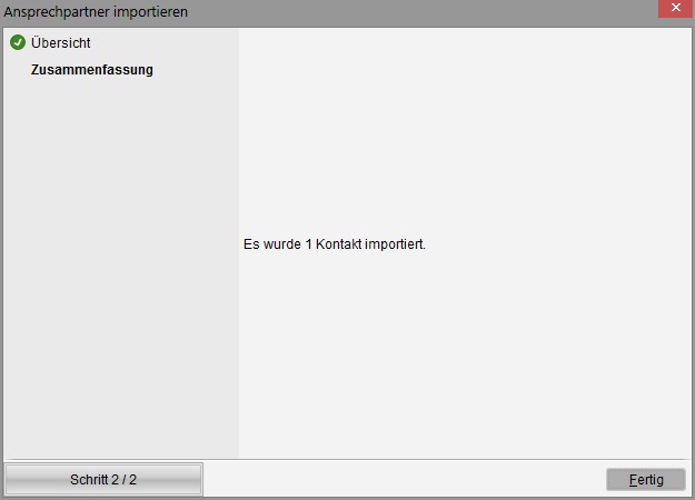 Es wird die Anzahl der importierten Kontakte angezeigt.