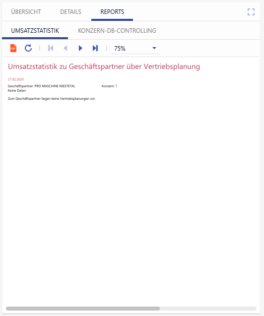 Wenn ein Report keine Daten liefert, bekommen Sie eine Hinweismeldung (Die Auswertung <...> enthält keine Daten).